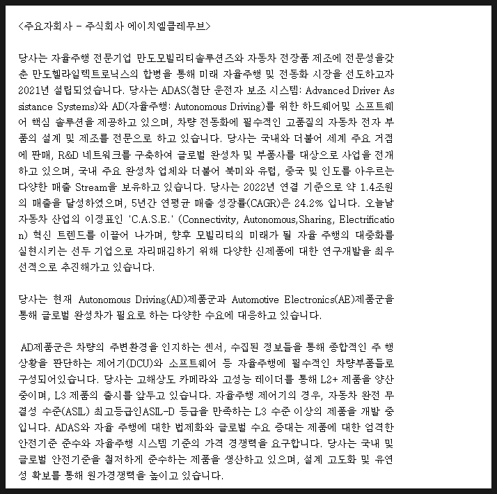 4. 주요 자회사로 에이치엘클레무브를 두고 있음