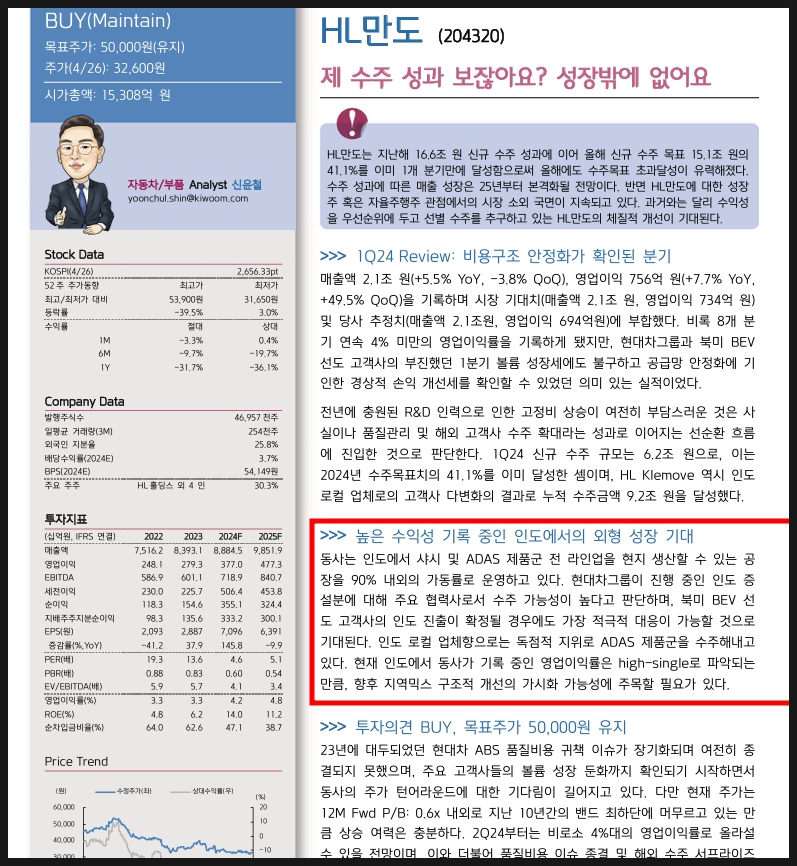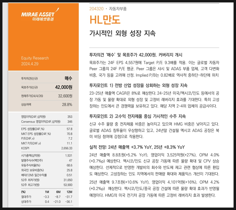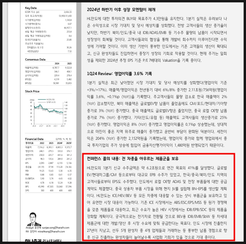 HL만도 주가 전망에 대해 남겨보겠습니다.
