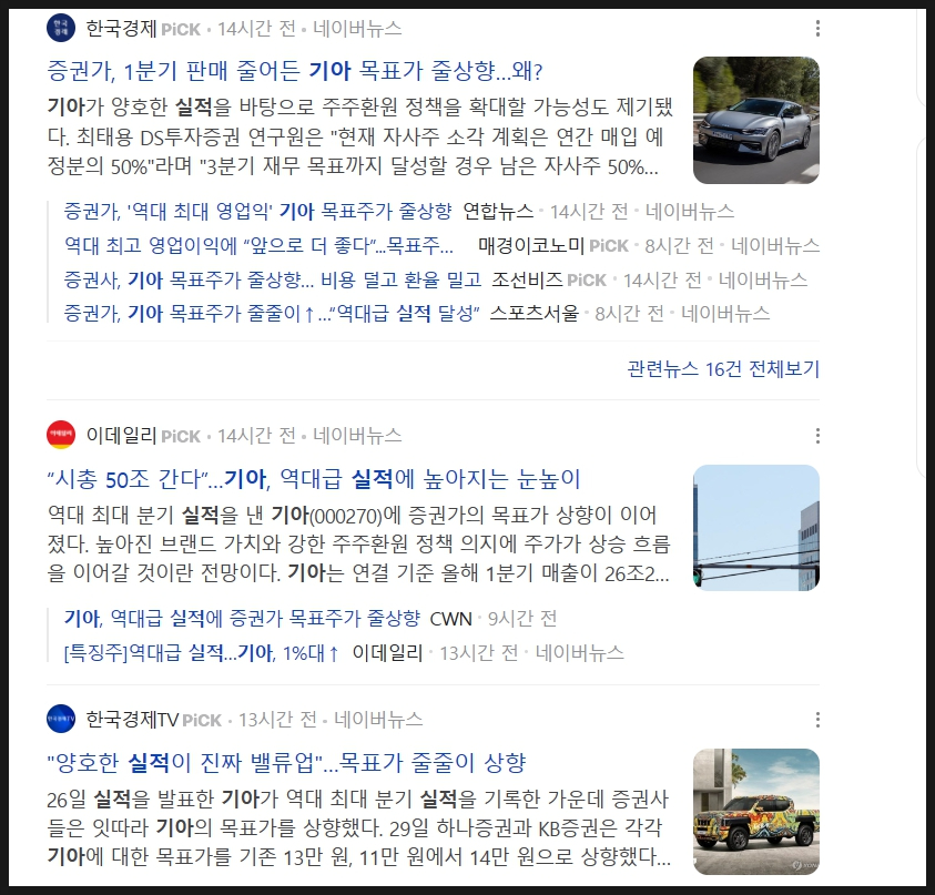 기아도 역대 최대 분기 실적을 기록하면서