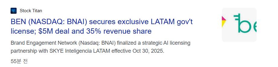 브랜드 인게이지먼트 BNAI 급등 이유는(Ft. 전략적 파트너십)