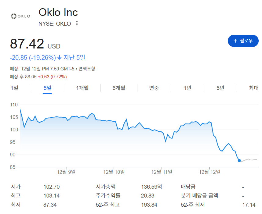 Oklo 급락도 같은 맥락