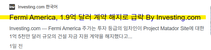 Fermi America, AI 데이터센터 프로젝트 관련 1억5천만 달러 투자 철회 공시