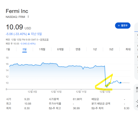 미국 원전주 FERMI OKLO 급락 이유는, 페르미아메리카
