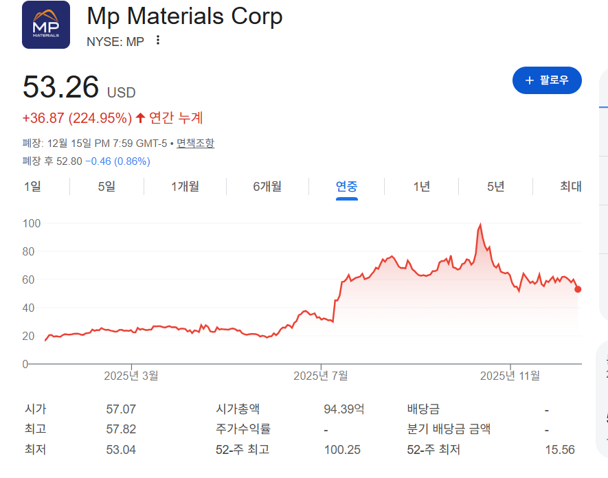 MP Materials, Lithium Americas, Trilogy Metals와 동급 포지션이라고