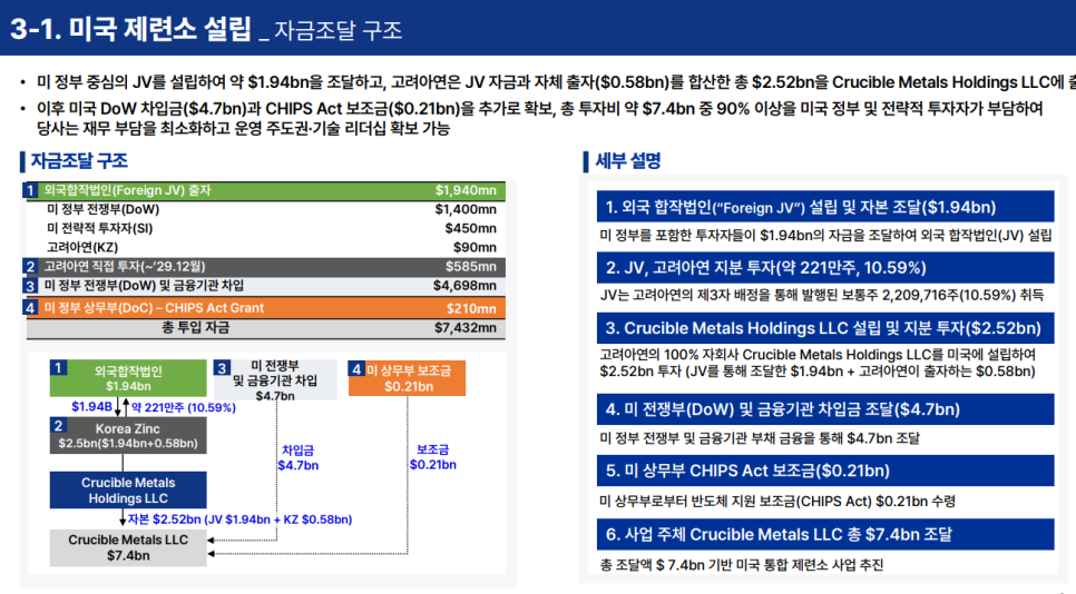 미국이 고려아연에 직접 투자한 것이 아니라, 고려아연이 미국 내에 대규모 투자를 진행하고 미국 정부가 정책·보조금·공급망으로 이를 밀어주는 구조다.