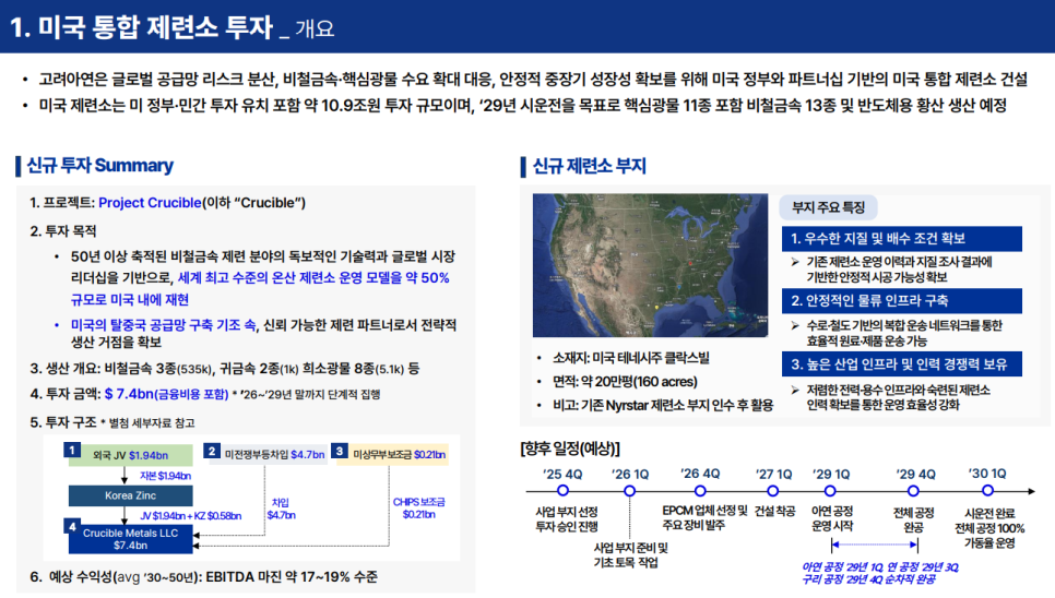 고려아연은 미국 핵심광물 JV 투자를 위해