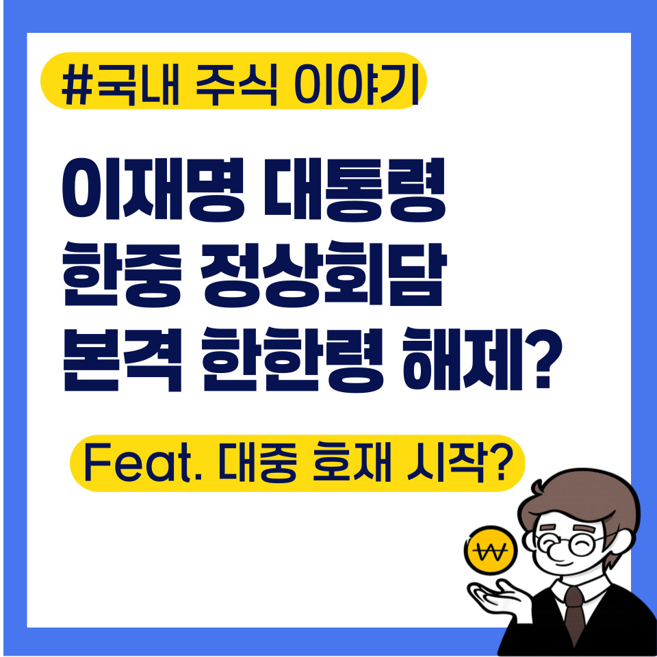 의제는 AI·첨단·재생에너지·교역 확대 등 경제협력과 함께, 한한령 완화·문화 교류 복원이 핵심으로 거론되며 이미 엔터·게임·뷰티·관광주에 기대감이 선반영된 상태.