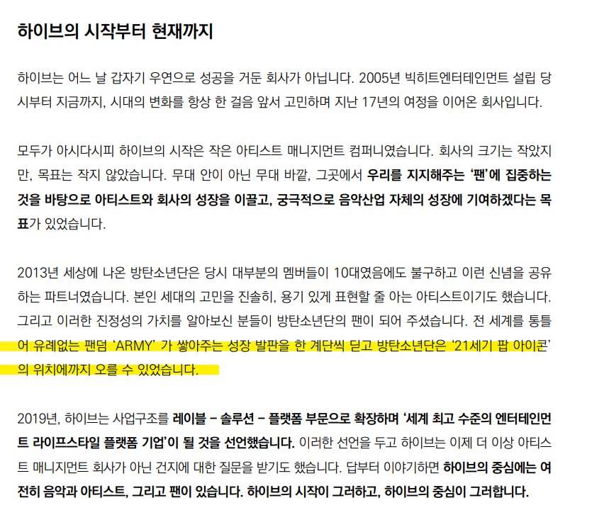 하이브 성장의 원인이라고도 할 수 있음.