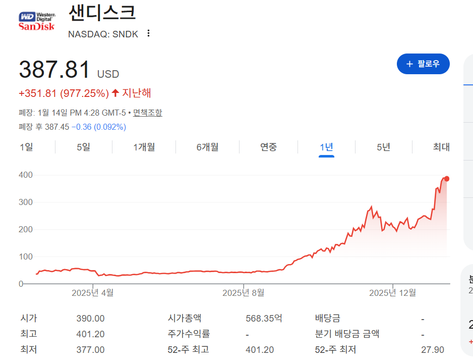 샌디스크 주가가 다시 움직이는 이유는 단순하지 않다.