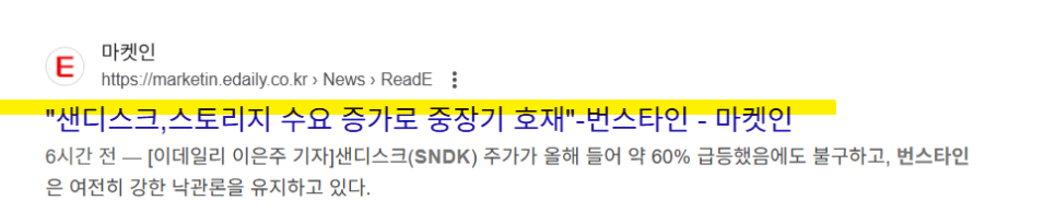 Bernstein이 샌디스크에 대해 던진 한 문장은 이거다.