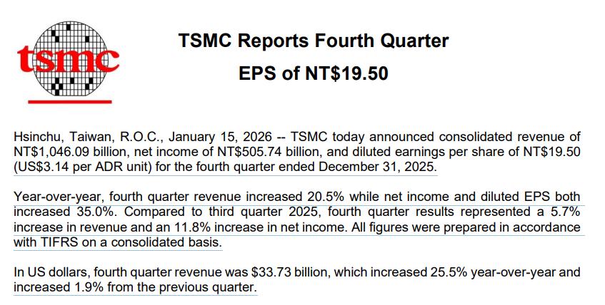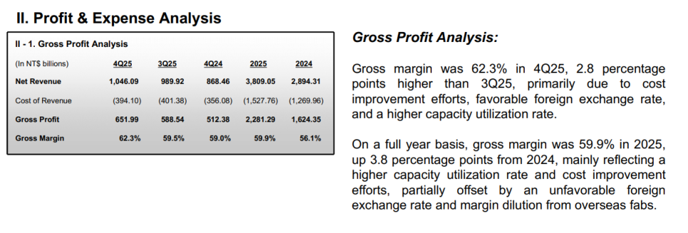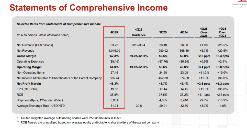 TSMC 4Q25는 매출·마진·이익이 동시에 사상 최고 수준으로 개선된