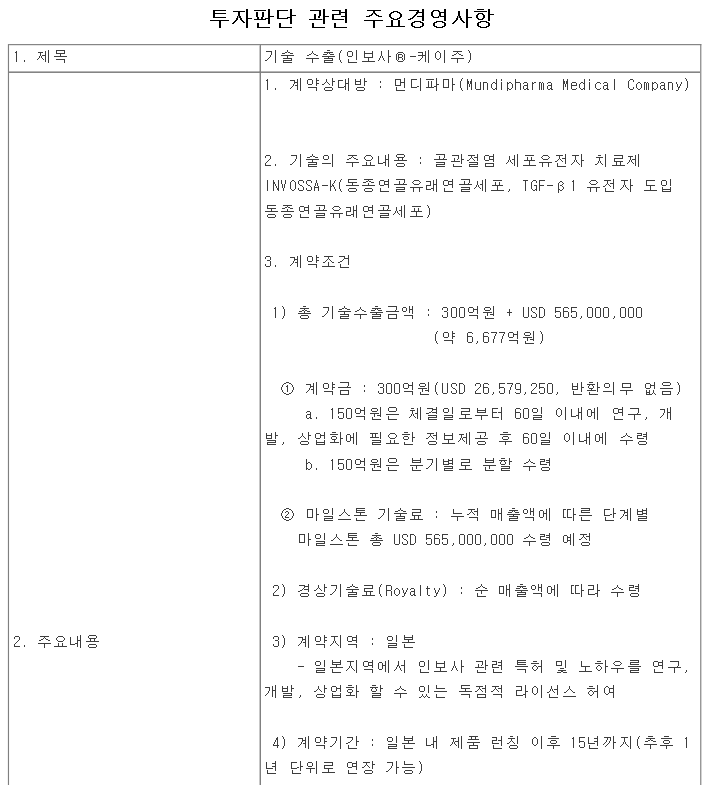 작년말에 계약이 파기되어서 아쉬움이 컸는데, 올해 다시 더 좋은 조건으로 계약을 이끌어 냈습니다. 유한양행에 이어 코오롱생명과학이 LO를 함으로써, 삼바때메 안좋아졌던 바이오주 투자심리도 살아날 것으로 기대하고 있습니다. 제가 가진 신약 바이오 종목도 쭉쭉 올랐으면 좋겠습니다.