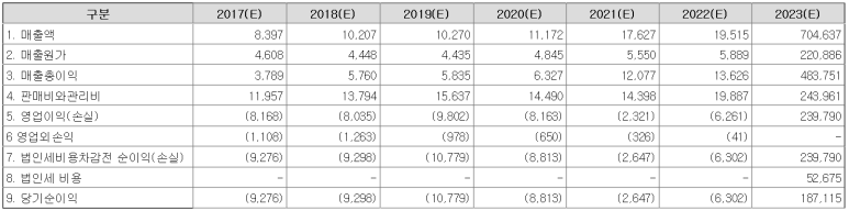 추정 손익계산서