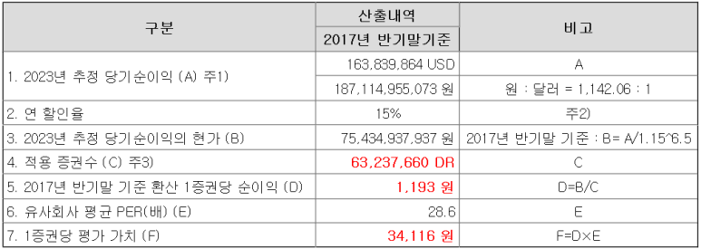 2023년을 인보사 미국 판매를 할 것으로 가정하고 있습니다. 매출은 7000억 정도고 그중 당기 순이익은 1870억으로 잡고 있습니다. 예상보다 상당히 오래 걸리는군요. 최소 5년이라... 연 할인율은 15%로 적당하다고 생각됩니다. 더 높이면 사실 밸류에이션의 의미가 없어진다고 생각하기에.. per은 29.