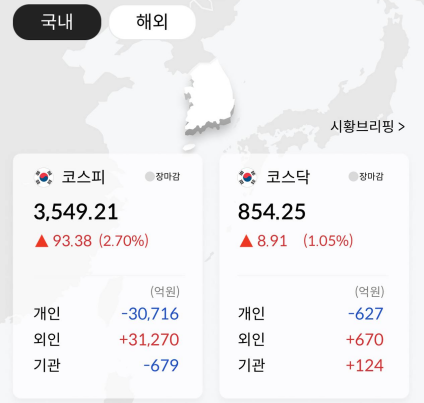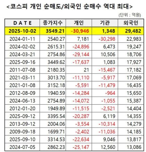 외국인 코스피 3조이상 순매수, 개인 3조이상 순매도 (역대 최대)