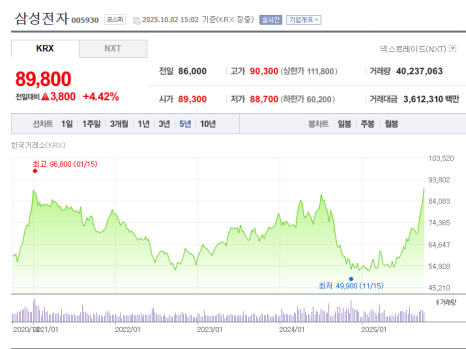 21년1월15일 90,000 전자 이후, 25년 10월2일 다시 90,000전자 Touch
