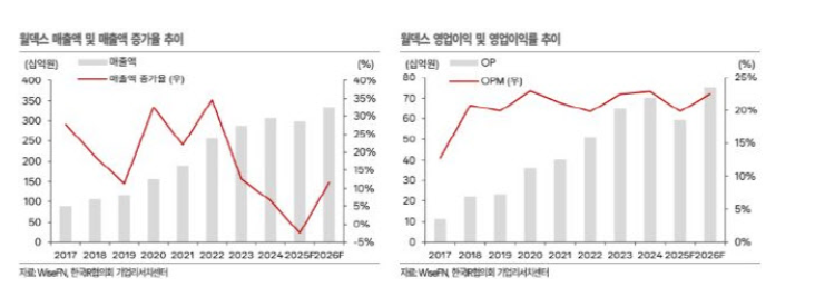 2025년 월덱스의 매출액은 2991억원, 영업이익 594억원으로 전망됐다