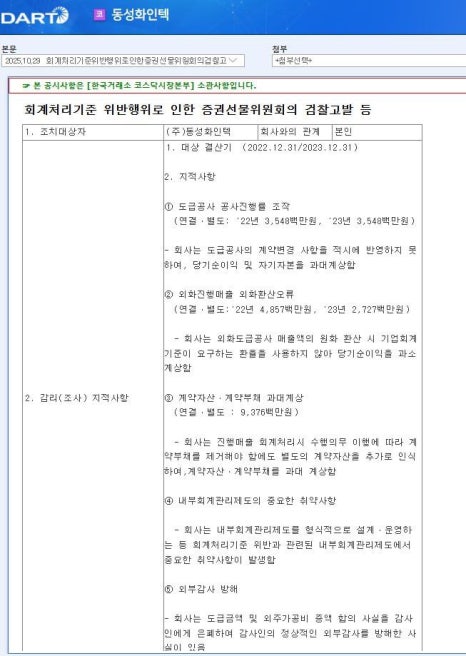 외화도급공사 매출액의 원화환신시 기업회계 기준이 요구하는 환율 미적용