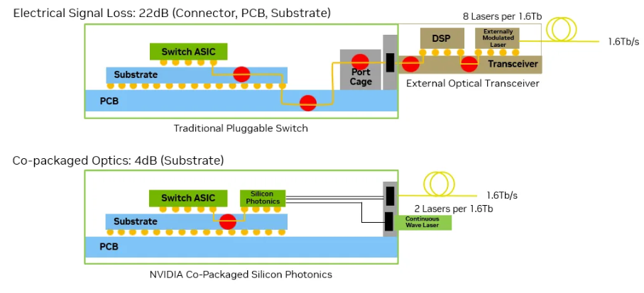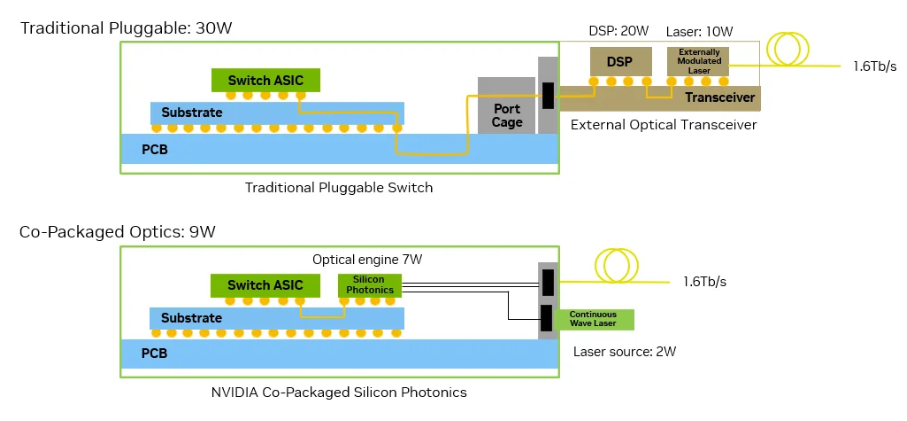 그림 4: NVIDIA 광학 스위치 ASIC 및 통합형 공동 패키징 실리콘 광학 엔진