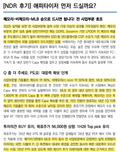 1) FC-CSP 추가성장 2) 적자지속 FC-BGA BEP시점을 1Q당김 3)MLB-네트워크 & AI가속기 등 내년 상반기 CAPA확장