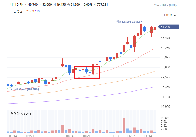 10월에 나름 잘한 것이라면 대덕전자를 우선 사보자고 결정하고 방향을 보여주지 못하는 '월덱스'를 1/3 까고 일부 매수를 하였다. 투자금도 작아서 한번에 사도 되지만, 주저주저함 때문에 35,000아래서 3일간 나누어 산것 같다. 이건 가족계좌에 삼성전기가 있어 기판을 (특히 FC-BGA) 계속 보았고, AMD에 대한 뉴스도 계속 나왔기 때문이다. (마침 AMD도 보유중이었다) 단기간 만족할만한 수익이지만, 사두고는 아무것도 하지 않았다. 당분간도 그럴 예정이다. 오늘 시장이 많이 빠진다고 하는데, 빚장수비 & 우주방어력이다