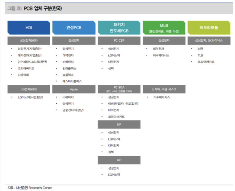9.글로벌 생산업체는 대덕전자, 심텍, 코리아써키트, 일본의 이비덴신코, 쇼와덴코, 대만 마이크론 등이 있음