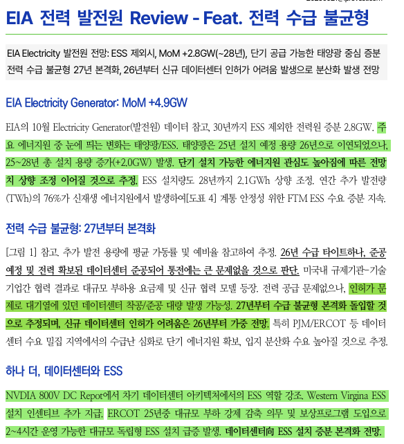 [산업Study] EIA 전력 발전원 Review - Feat. 전력 수급 불균형 (25.12.15 By 교보증권)
