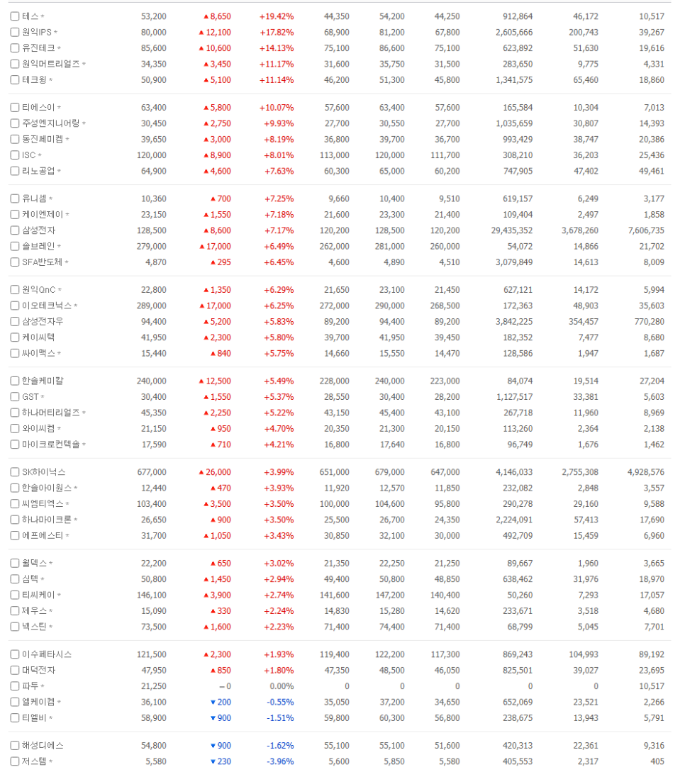 오전이나, 장이 마무리 되면 확인하는데, 어제는 마치 9월 반도체의 시세가 시작하던 그런 어느날 같았다