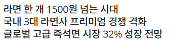 업계 관계자는 “가처분 소득 증가와 미식에 대한 관심, 건강을 고려한 소비 트렌드가 프리미엄 라면 시장 성장을 견인하고 있다”고 분석했다.