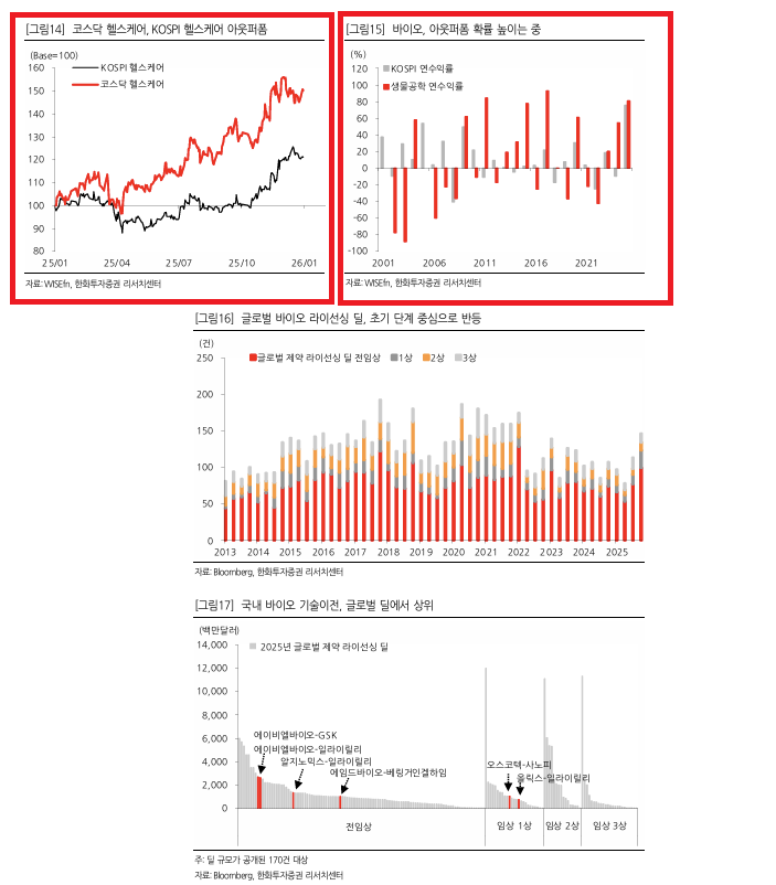 -.26년 중소형 바이오 집중 필요 ;승률 상승, 사유는 글로벌 제약 라이선싱 딜이 임상 초기 단계 중심으로 증가, 국내기업은 포지셔닝이 되어 있음