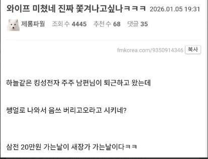 삼전주주 남편에게는 쌩얼 맞이 불가 , 음쓰 진행 불가