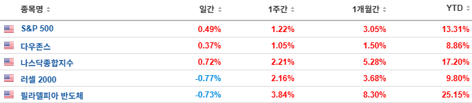 -> 테크 강세 : 애플, 마이크로소프트, 오라클, 팔란티어 강세 영향