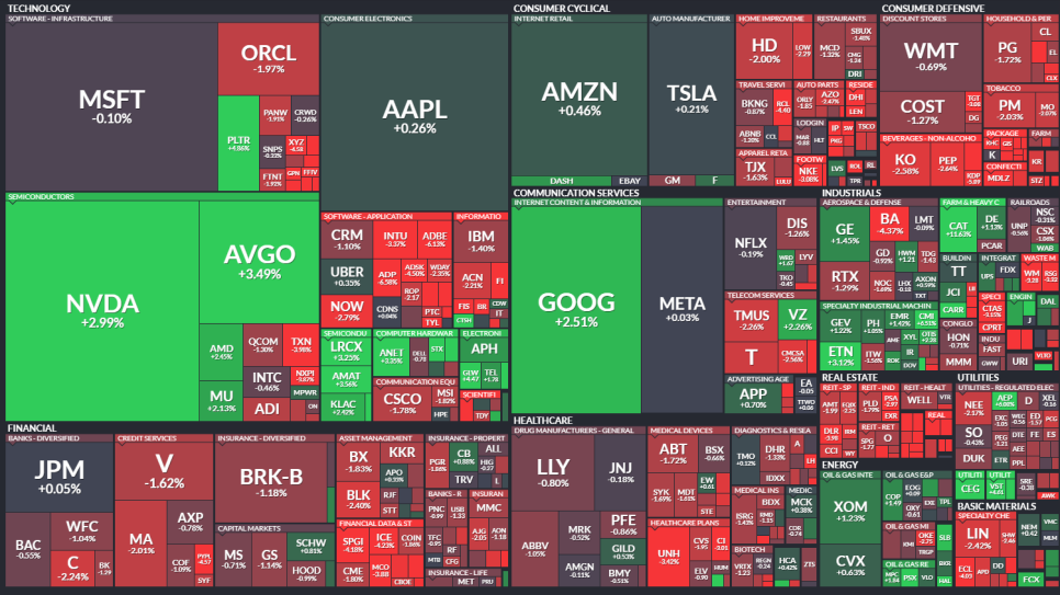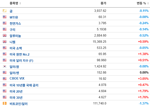 엔비디아(+2.99%)는 AI 산업에 대한 기대 속 블랙웰 칩에 대해 미-중 정상회담에서 논의할 수 있다는 소식에 상승하며 사상 첫 시가총액 5조달러를 상회.