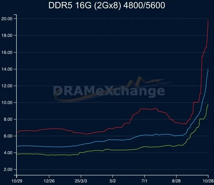 : 메모리 가격은 짧은 기간안에 수직 상승세를 보이는 중