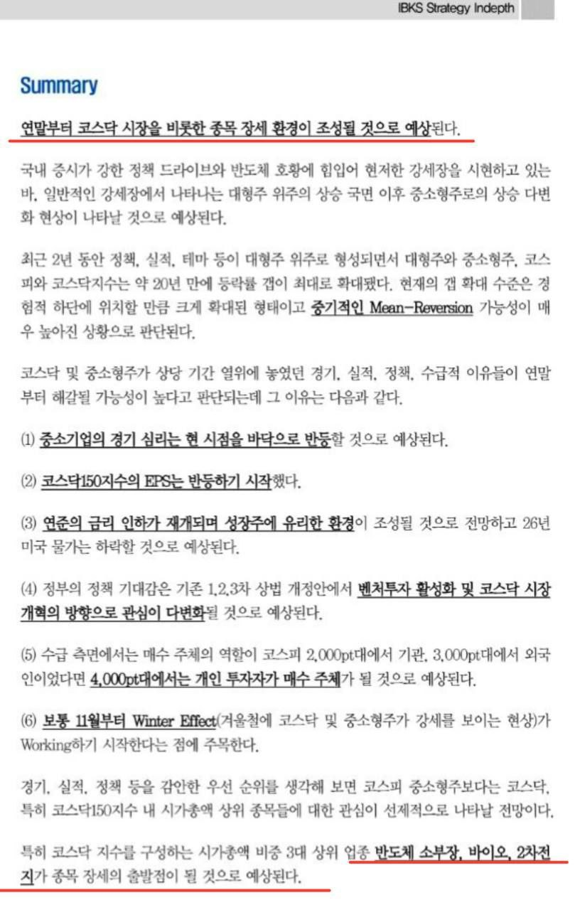 : 어제는 IBK증권에서 연말부터 코스닥 시장을 비롯한 종목 장세 환경 조성을 예상.