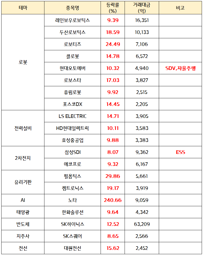 -로봇 : LS티라유텍 / 티로보틱스 / 로보티즈 / 두산로보틱스 / 포스코DX / 현대오토에버 / 케이엔알시스템 / 레인보우로보틱스 / 로보로보
