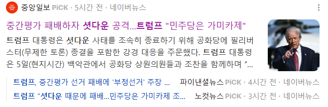 -> 이는 트럼프의 지지율 하락으로 이어지는 것이 확인되고 있음