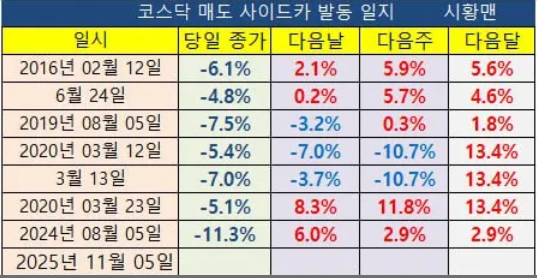 : 전일 증시 급락에 사이드카 발동 (마지막 사이드카 발동일은 24년 8월)