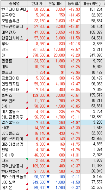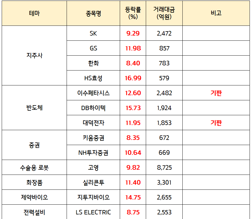 * 오늘의 강세 테마 *