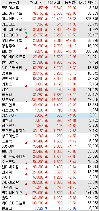 3. 상승률 & 유동성 상위 특징주