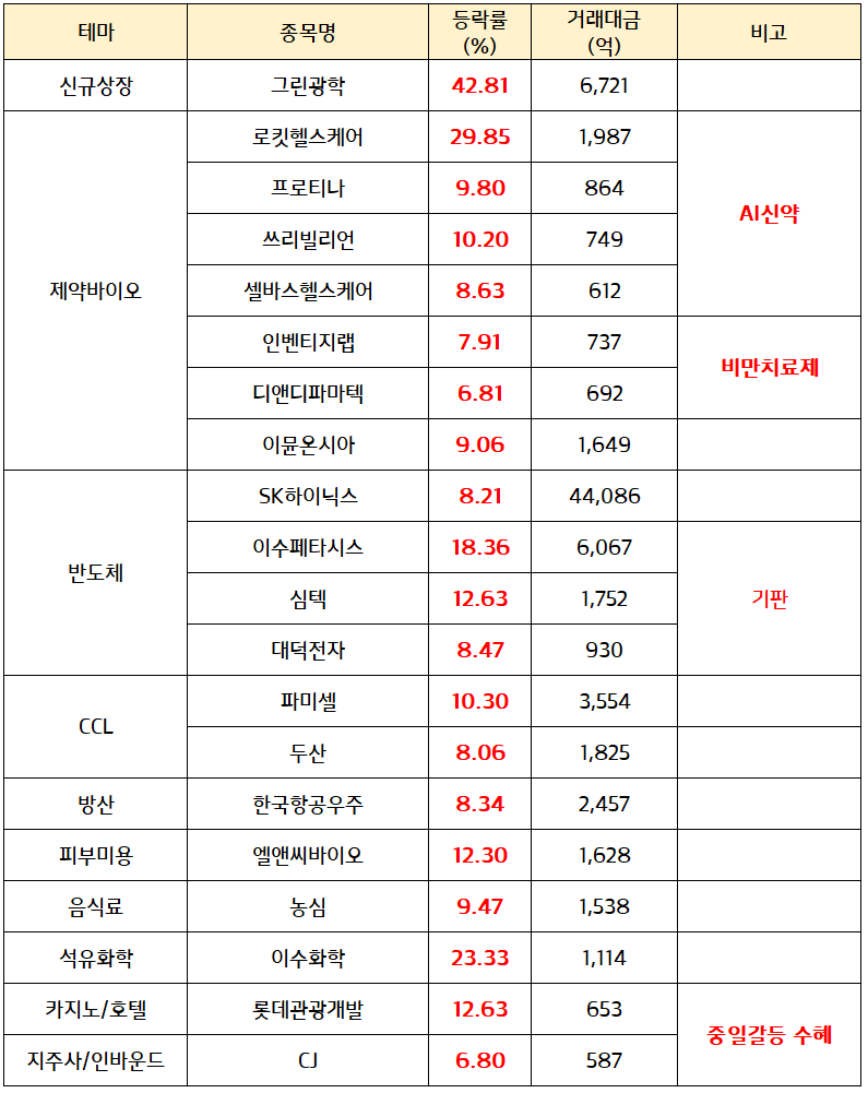 * 오늘의 강세 테마 *