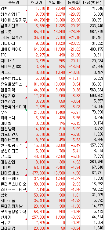 3. 상승률 & 유동성 상위 특징주
