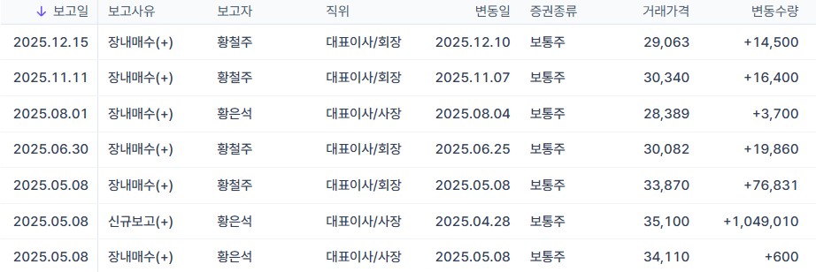 올해 주성엔지니어링 회장,사장님들은 적극적인 매수 진행 중