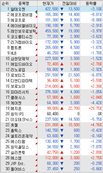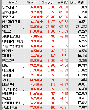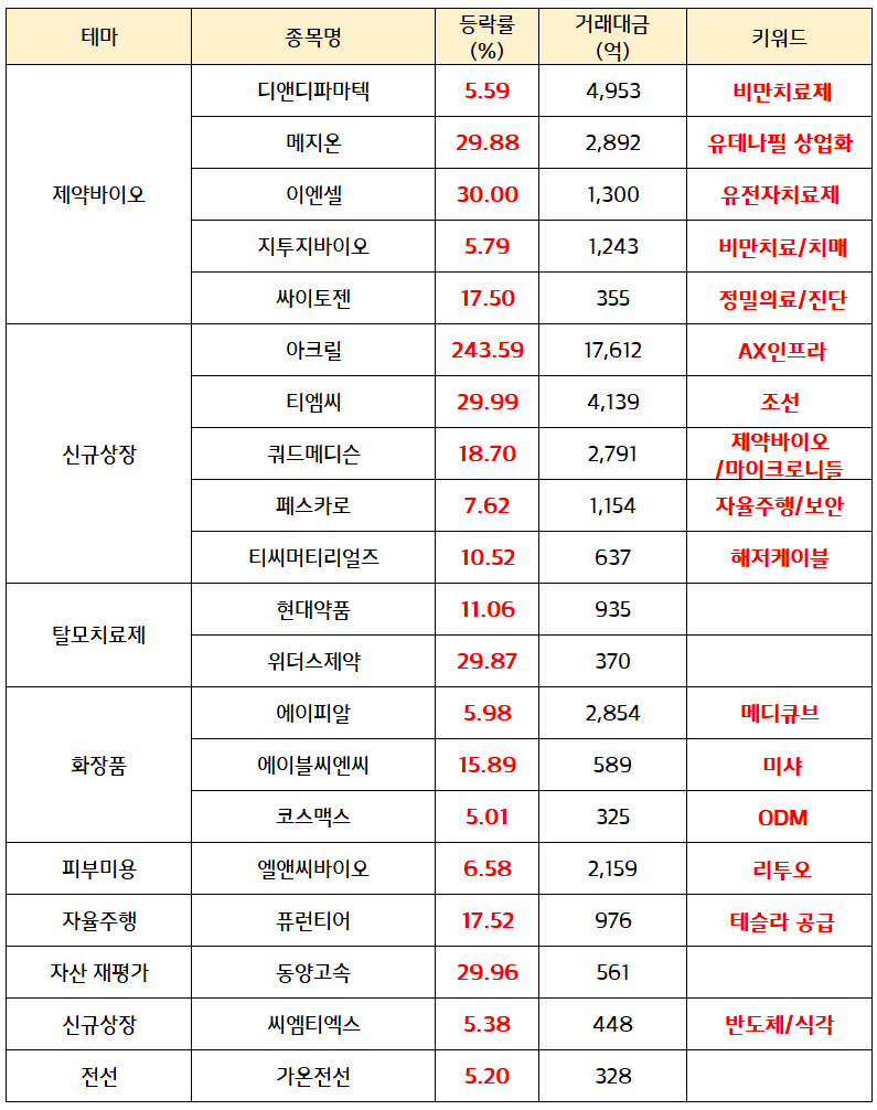 ▷이 외 줄기세포, 엔터테인먼트, 편의점, 통신, 건강기능식품 등 일부 테마만이 상승.