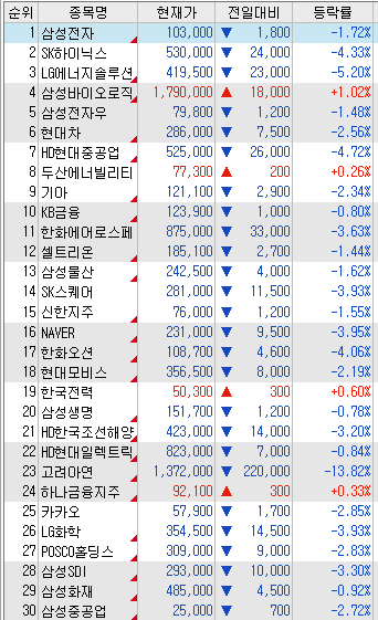 ▷AI 버블론 여파 등에 코스피 지수 4,000선 붕괴 속 증권 테마 하락.