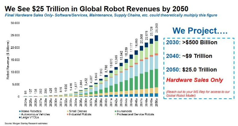 모건스탠리, 2050년 글로벌 로봇 매출 25조 달러 전망
