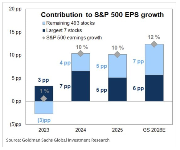 -특히 2026년은 M7을 제외한 S&P 493기업들의 이익 기여도가 전년 대비 훨씬 높음