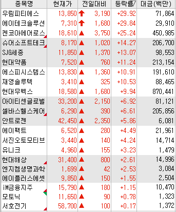 -> 우림피티에스 / 에스피시스템스 / 현대무벡스 / 한라캐스트 / SJG세종 / 휴림로봇 / 원익홀딩스 / 씨메스 등