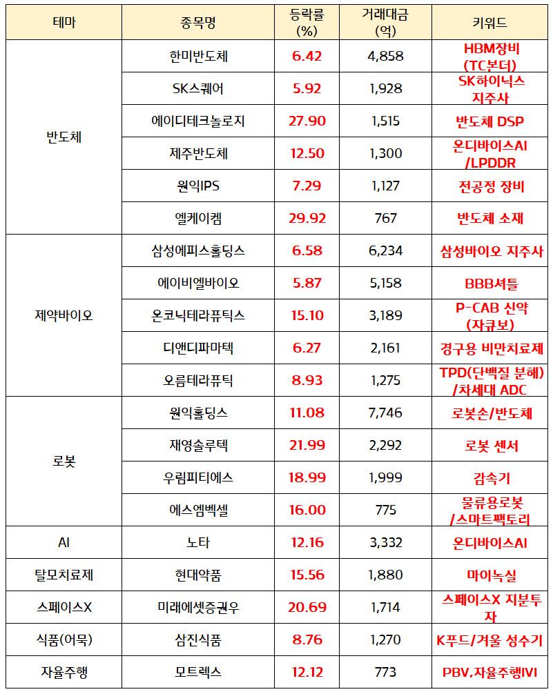 ▷노무라증권, 삼성전자 목표주가 상향 조정 및 삼성전자·SK하이닉스, 내년 2월 HBM4 세계 최초 양산 소식, 반도체 관련주 강세