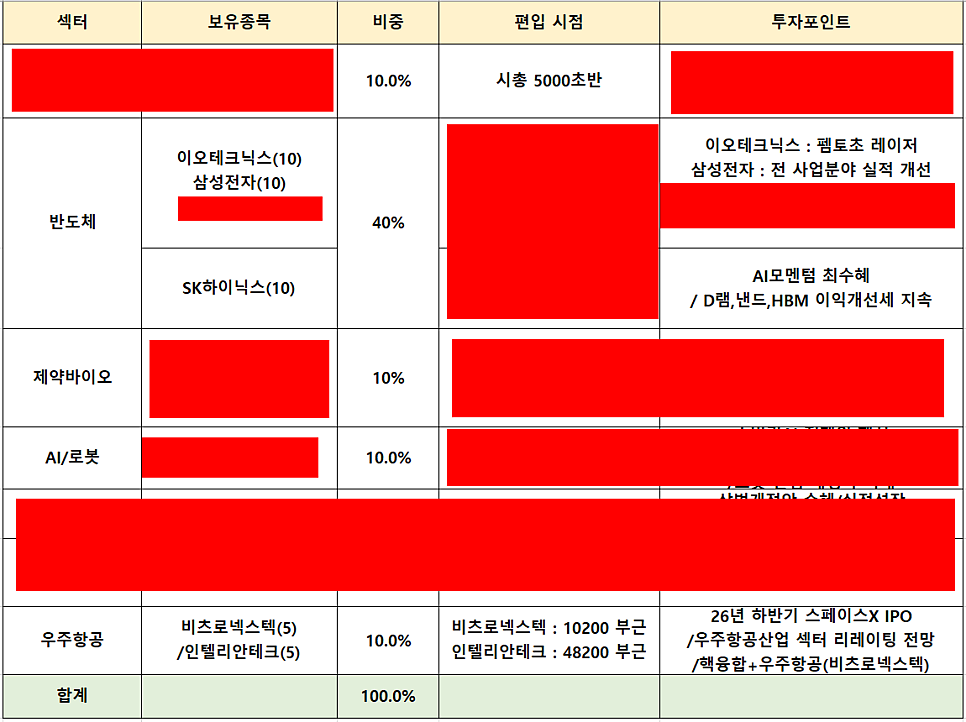 매주 주기적으로 보유종목 현황을 텔레그램 구독자분들께 공유드리고 있습니다.